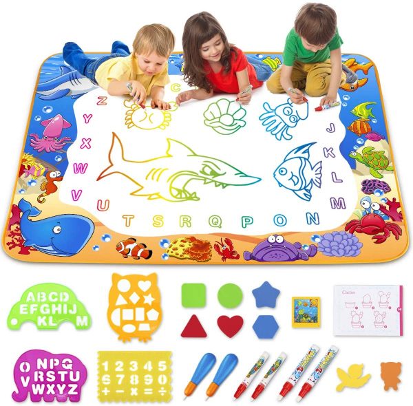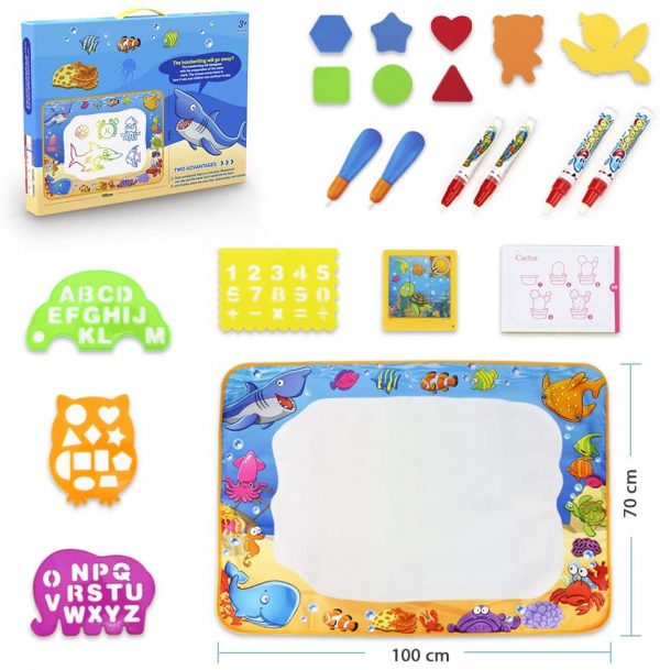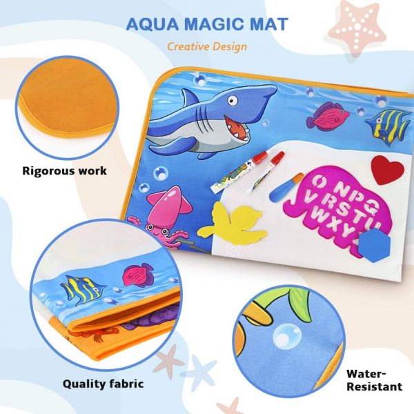 - Water Drawing Mat:Large Size.Sea world pattern.Be easy to use.Can be folded into the compact size.Portable for indoor outdoor and travel.A great learning toy for toddlers.A good interaction toy for boys and girls.
