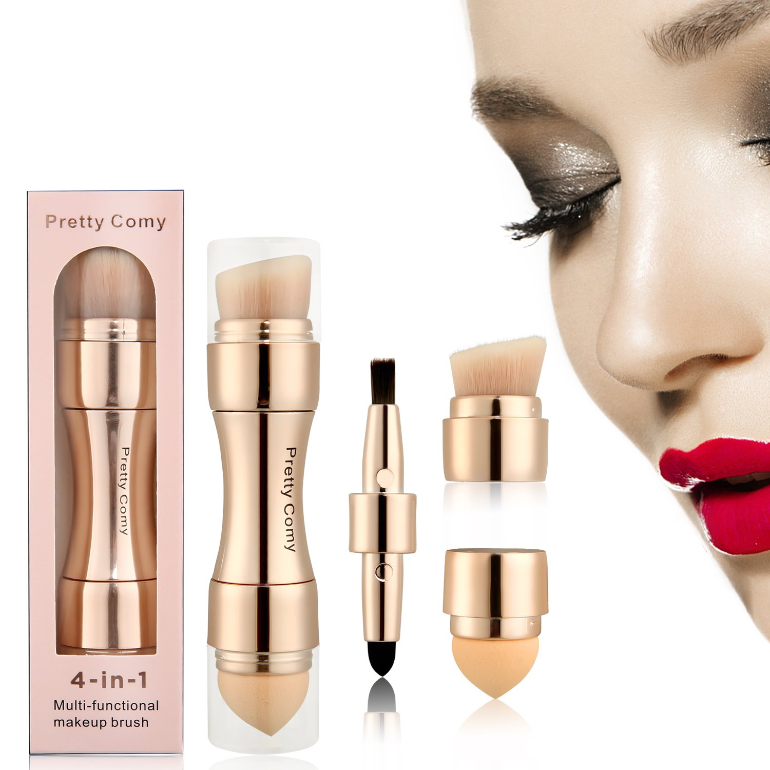- 【PORTABLE COMPACT MAKEUP BRUSHES】Are you tired of carrying a bunch of brushes in your purse? This 4 in 1 Professional Makeup Brushes is the best and only brush you need to carry around anywhere.You need this 4 in 1 make up brushes because it fits in your Purse saves space reduce heaviness and is the best for quick bathroom makeup fixes.Makeup Brushes to attend to all your makeup needs, perfect for save space in your pocket. 5.2 inch, Handle Color: Noble Champagne.